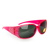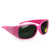This fabulous model has a really large lens size. And also has extra wide sides. So it certainly will give maximum UV protection. But then we have added a little sparkle on the temples. So it truly has all the glamour any young girl needs.